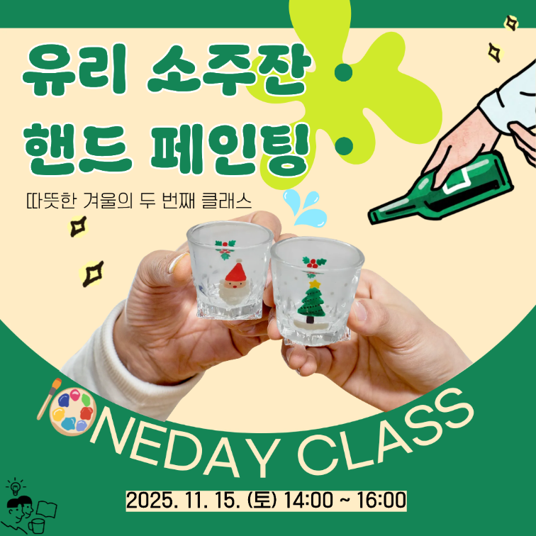 따뜻한 겨울의 두번째 클래스 유리 소주잔 핸드 페인팅 원데이클래스에 참여하실 청년분들을 모집합니다.