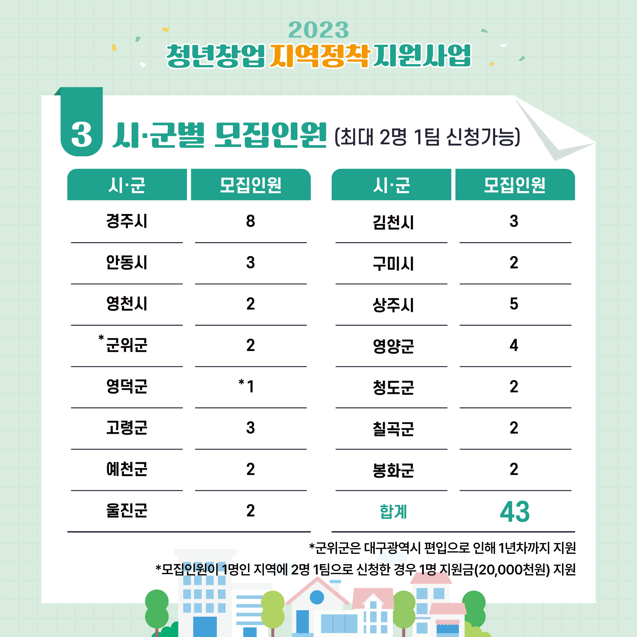 청년 인구 유입 및 지역 활력을 위한 2023 청년창업 지역정착 지원사업 참여자를 모집합니다. 많은 관심 부탁드립니다 :)