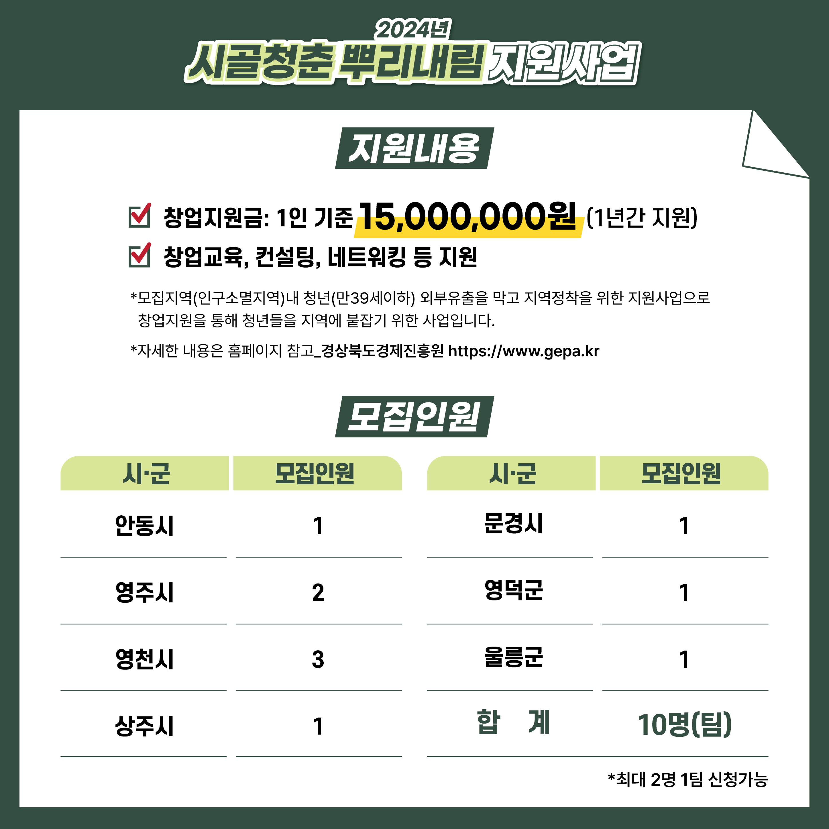 2024년 시골청춘 뿌리내림 지원사업(취업·창업)