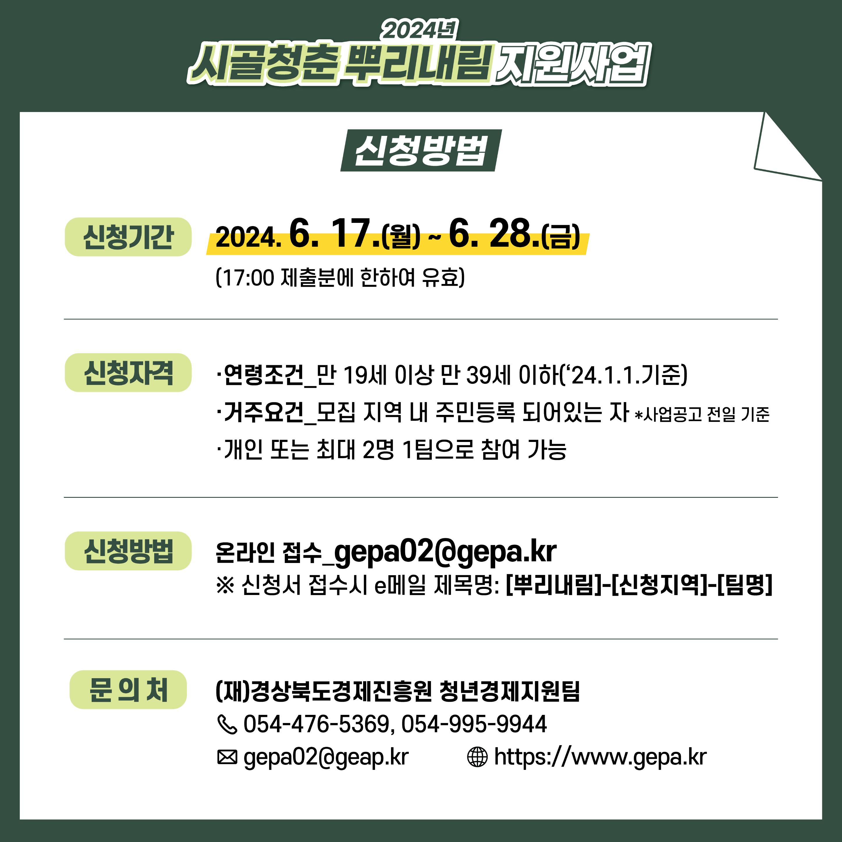 (재)경상북도경제진흥원 청년경제지원팀) (☞054-476-5369)
